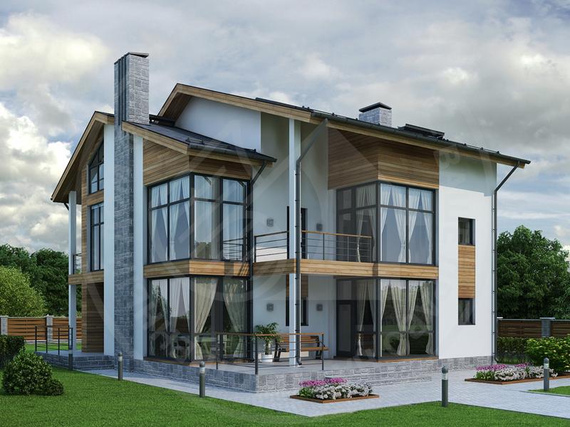 Коттедж с угловым остеклением из газобетона — 301.1 м² | HomePlans