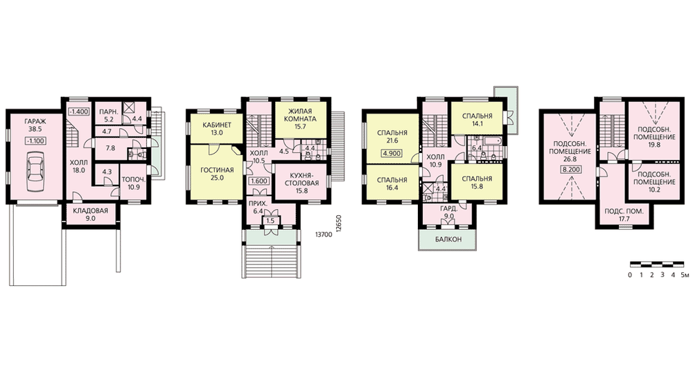 Большой, респектабельный особняк для состоятельных заказчиков. К его несомненным достоинствам можно отнести яркую выразительность фасадов. Великолепные пропорции, различные формы оконных проемов, парадно решенный вход – все это формирует запоминающийся, неповторимый облик дома. Всего в доме два жилых этажа, цокольный этаж и чердак. В цокольном этаже расположены служебные и технические помещения дома. Он имеет выход на улицу и связан с остальными этажами дома внутренней лестницей. Первый этаж на полтора метра поднят над уровнем земли, сюда ведет широкая парадная лестница. Здесь находятся помещения дневной зоны: кабинет, гостиная, кухня-столовая и жилая комната, сблокированная с санузлом. На втором этаже расположены четыре спальни и две ванные комнаты. Одна из спален оборудована светлой гардеробной-будуаром, пройдя через которую можно выйти на балкон. На чердаке находятся подсобные помещения дома.