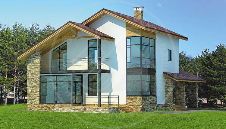 Вариация одного из самых популярных проектов - 1386-0, современного, стильного дома с красиво решенным угловым остеклением. Оно и внешне эффектно, и формирует выразительный интерьер. Для дома характерна рациональность объемно-планировочного решения, высокий уровень комфортности.