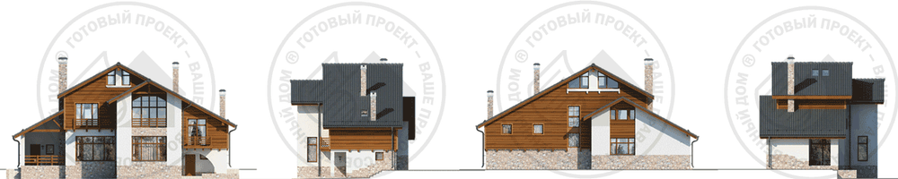 Солидный дом для постоянного проживания, решенный в стиле швейцарского шале. Оригинальный фасад предполагает расположение дома таким образом, чтобы из окон любоваться живописным пейзажем с озером, при этом одной стороной дом можно пристыковать к границе участка. Проект отличают большие площади помещений холлов, гостиной, кухни-столовой, спален и ванных комнат, где с комфортом можно разместить всю необходимую мебель и оборудование. Мансардное помещение можно оборудовать под любые нужды заказчика.