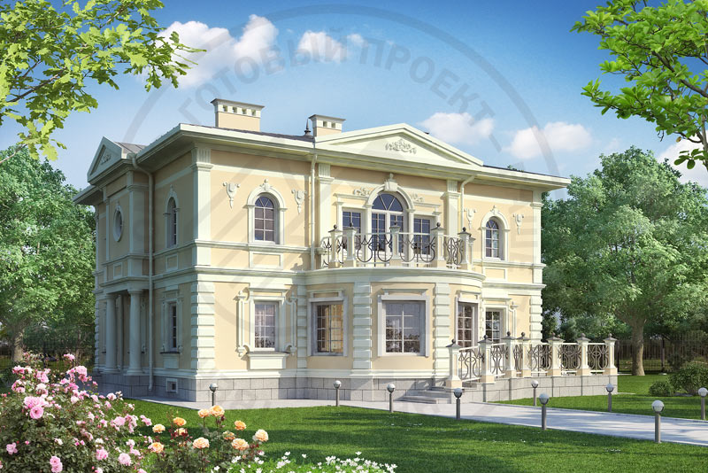 Двухэтажный особняк с эксплуатируемым цоколем. Исполненный по канонам классицизма, он отвечает всем потребностям современного человека.