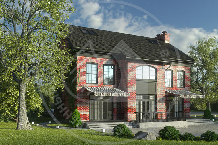 В этом доме удалось изящно выразить строгие английские традиции георгианского стиля. Ставший, в последнее время, очень актуальным в интерьере георгианский стиль получил свое развитие и в экстерьере. Строгая лаконичность и симметрия объема в сочетании с фактурными контрастными фасадными деталями и материалами – чугун, сланец, черные деревянные карнизы и окна и, конечно, красный кирпич – создают роскошный, и в то же время сдержанный архитектурный образ.