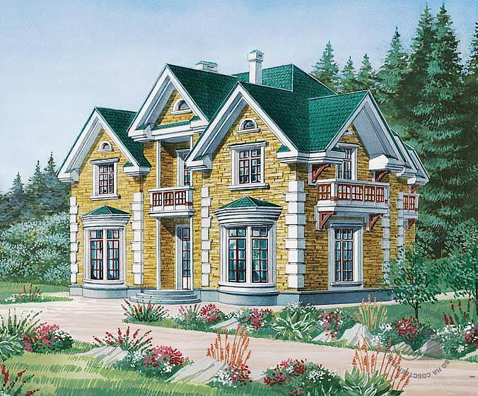 Особняк в стиле дворцовой архитектуры не оставит равнодушными состоятельных заказчиков, мечтающих о собственном родовом гнезде. Со своими изысканными, богато декорированными фасадами он особенно удачно будет смотреться в историческом пригороде. В доме есть подвал и два жилых этажа. В подвале, помимо служебных и технических помещений, запроектирована большая зона релаксации с сауной и бассейном. На первом, гостевом этаже симметрично по отношению к лестничному холлу располагаются гостиная с зимним садом и большая столовая с зоной кухни. Гостевые спальни выделены в отдельный блок и несколько изолированы. На втором этаже находятся четыре спальни, каждая из которых имеет свой балкон.
