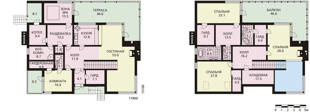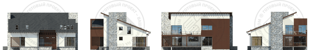 Стильный коттедж с яркими запоминающимися фасадами для активной семьи. Наличие комнаты на первом этаже делает этот дом удобным для семьи из двух поколений. Планировка решена с учетом всех потребностей для комфортной жизни за городом в любое время года. Первый этаж – зона для общения и активного проведения дня. Здесь расположены спа-зона, большая гостиная с угловым остеклением, просторная терраса, на которой можно собираться компанией, а также подсобные и технические помещения. Второй этаж – традиционно приватная зона. Три комфортные спальни имеют свои гардеробные комнаты, также здесь размещены три санузла и кладовая.