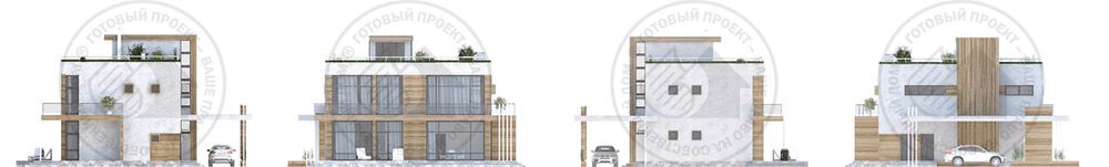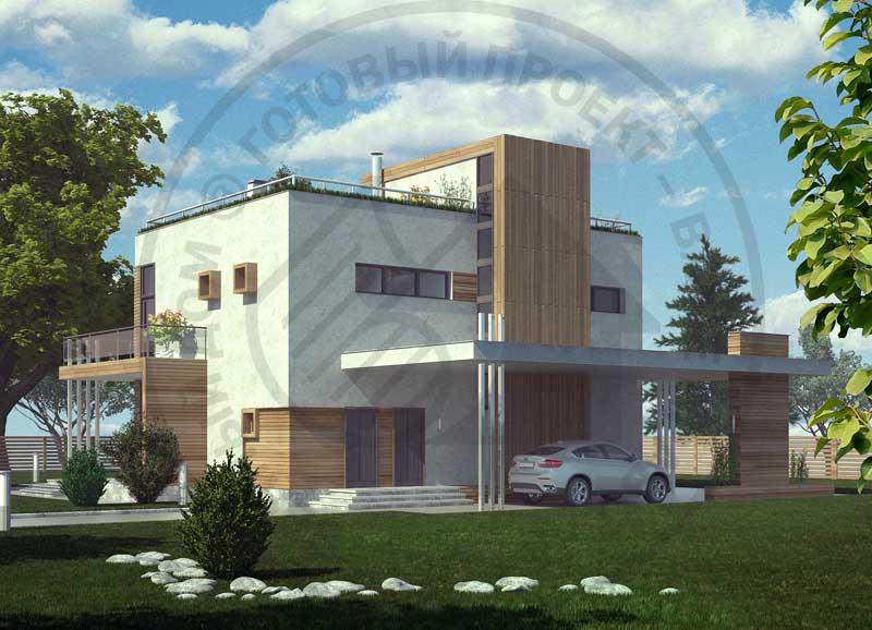 Из дома есть выход на обширную террасу-балкон. Внешний вид дома можно охарактеризовать как динамичный, современный и экологичный. Это дом для людей, живущих в ногу со временем. Панорамное остекление наполняет интерьеры светом и позволяет наслаждаться окружающей природой. Внутреннюю планировку отличает такая черта, как гибкое, перетекающее пространство: гостиная-столовая сообщается с холлом, а гостиная может быть расширена за счет подвижной перегородки. Комфорт второго этажа обеспечивается наличием у каждой спальни собственного санузла. Выход на эксплуатируемую кровлю обеспечен комфортной, некрутой лестницей.