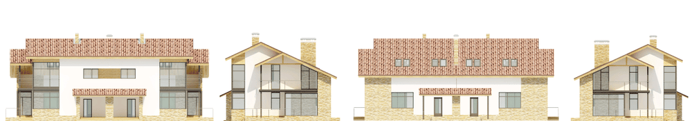 Современный, экономичный и одновременно эффектный двухсекционный дом. В основу блокировки был заложен один из популярнейших проектов нашей коллекции, проект F-1386-0. Cблокированный вариант унаследовал все его лучшие качества, дополнив спецификой, присущей многосемейным домам. Такой дом универсален в своем применении. Он может быть индивидуальным жильем для двух родственных семей, экономя им площадь участка и расходы на строительство и эксплуатацию, а может служить объектом бизнеса и являться очень удачным примером использования в комплексной застройке территорий. Дом представляет собой две зеркально сблокированные квартиры. Каждая из них удобна, оптимально комфортабельна и эстетически привлекательна. Эту привлекательность планировке придают прежде всего великолепные угловые витражи, создающие ощущение легкости и свободы внутреннего пространства. На первом этаже расположены гостевые помещения, на втором – спальные.