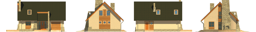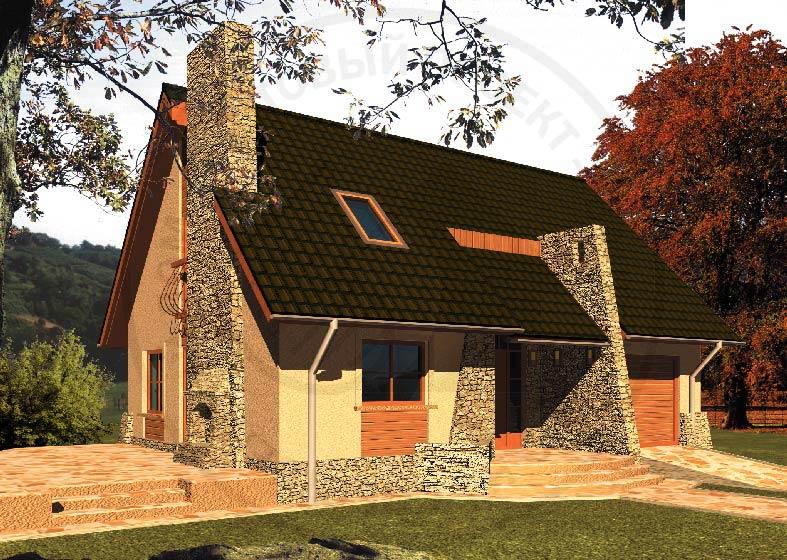 Небольшой современный дом, запроектированный с учетом всех современных европейских строительных тенденций, с жилой мансардой и встроенным гаражом, без подвала, предназначен для проживания семьи из 3–4 человек. В доме можно жить круглый год, но он может также выполнять и функцию только летнего домика. Здание опирается на простой план и имеет несложную конструкцию, благодаря чему стоимость его строительства совсем невелика.