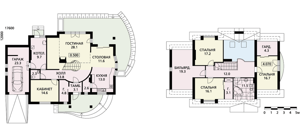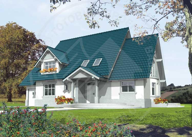 Просторный коттедж с жилой мансардой, без подвала, со встроенным гаражом, спроектированный европейскими архитекторами для проживания семьи из 4—5 человек. Дневная зона освещена большим окном и украшена интересным эркером столовой. В мансардном этаже размещены три спальни с гардеробными и ванная. Часть гостиной располагается уровнем чуть выше остальных помещений.