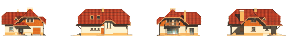 Европейский дом с жилой мансардой, без подвала, со встроенным гаражом, предназначенный для семьи из 4-х человек. Проект может быть реализован как двухсемейный дом или как отдельно стоящий на узком участке. Его характеризует простая конструкция и компактная форма – главная часть дома запроектирована в форме прямоугольника со слегка выдвинутым гаражом. Несложная конструкция дома и двускатная кровля позволяют этому проекту быть простым и экономичным при постройке. Дневная зона состоит из тамбура, холла, удобной гостиной с угловым камином, ванной, а также кухни с кладовой. Спальную зону в мансарде образуют три большие спальни, коридор и просторная ванная. Спальни имеют дополнительное освещение от мансардных окон, а две из них – еще и балконы.