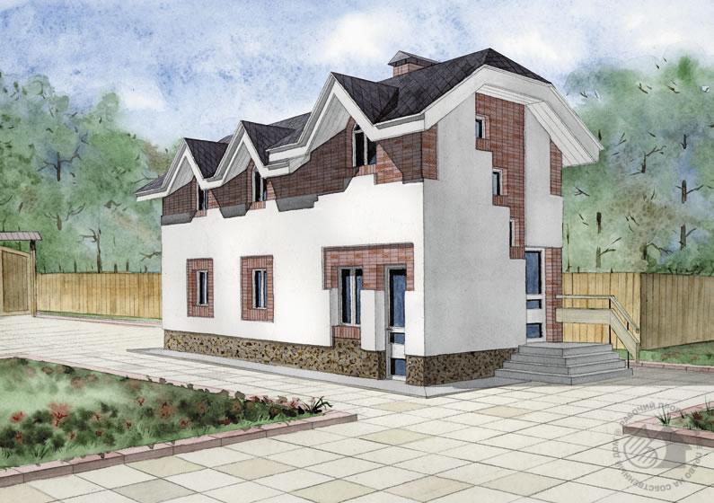 В последнее время в коттеджном строительстве хозяйственные постройки становятся все более актуальны, и эта тенденция вполне оправданна. Существует масса вспомогательных и технических служб, необходимых для обеспечения полноценной и комфортабельной жизни в загородном доме, которые не всегда хочется размещать под одной крышей с жильем. Это котельные, гаражи, технические, складские помещения. Зато выделенные в отдельные, самостоятельные постройки и отнесенные на расстояние от жилого дома, они очень удобны и функциональны. Одна из таких построек перед вами: небольшой хозяйственный одноэтажный блок с мансардой. На первом этаже расположены гараж и топочная, на втором – кухня, санузел и помещение охраны. Такой хозблок особенно уместно будет расположить при въезде на усадьбу.