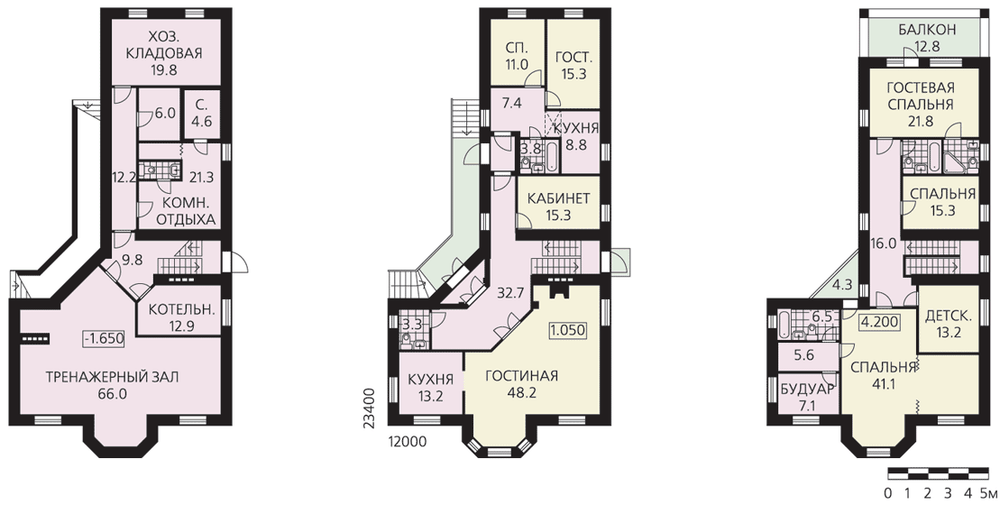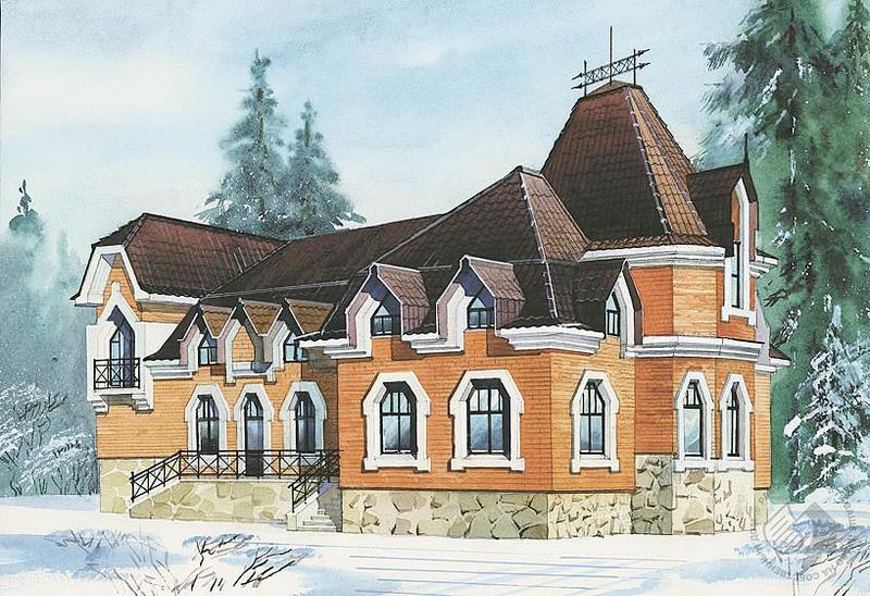 Внешне этот особняк напоминает старинный московский терем. Сочетание красной кирпичной кладки и белых наличников делает его фасады по-настоящему нарядными. Планировка дома тоже имеет свою «изюминку». Под одной крышей здесь объединены две самостоятельные полноценные квартиры, каждая из которых имеет свой вход, кухню и санузел. Это очень удобно для большой семьи, состоящей из нескольких поколений. В цокольном этаже расположены хозяйственные помещения, зона релаксации и большой тренажерный зал. При необходимости на его месте можно оборудовать гараж с заглубленным въездом. В мансардном этаже находятся спальни, которые можно разделить на семейные и гостевые. Эти группы помещений разделены лестничной клеткой, и каждая имеет свой санузел и ванную комнату.